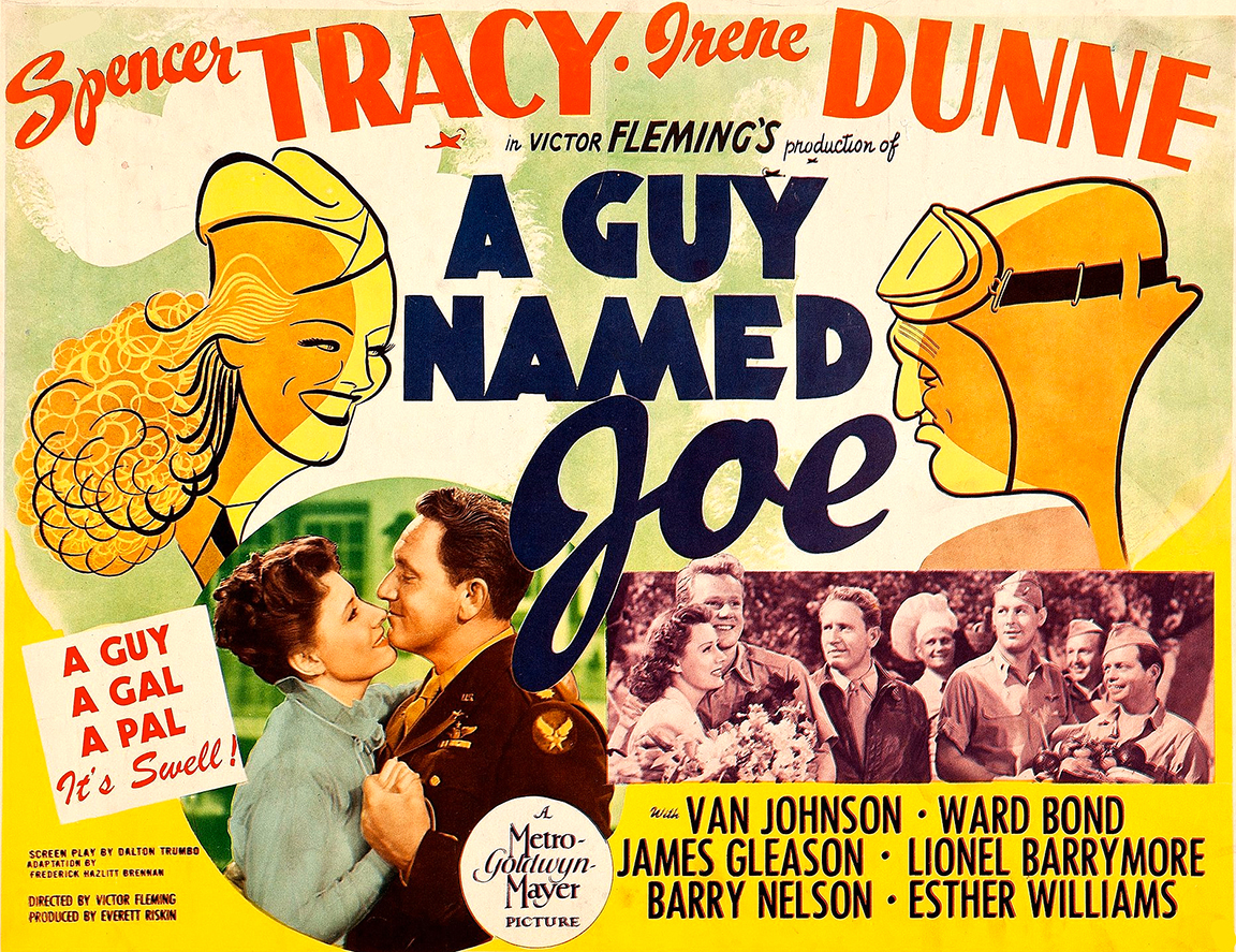 A Guy Named Joe (1943)In 1943, Dalton Trumbo did his part for the war effort by adapting Chandler Sprague and David Boehm’s story “Flyers Never Die” for MGM’s big-budget flyboy fantasy A Guy Named Joe. The film also marked a high point in Trumbo’s battle to become a successful screenwriter. After being fired by MGM in 1938, he returned to the studio with several box office hits and an Oscar nomination under his belt, factors that helped raise his market value considerably. Forgoing the guns, guts, and glory of conventional war movies, A Guy Named Joeexplored the emotional and spiritual nature of patriotism with a supernatural premise. As the writer, Trumbo was confronted with the task of keeping the film’s metaphysical premise grounded in the here and now, as well as crafting a message film that the War Department would endorse. The story begins as a fighter pilot named Pete (Spencer Tracey) agrees to fly one more mission before returning to the States with his sweetheart Dorinda (Irene Dunne). Unfortunately his plane is shot down, and while he manages to save his crew, Pete perishes while performing this final heroic act. But Pete’s tour of duty isn’t quite up yet. When he awakens and the dry-ice clouds of Heaven clear, he meets the “General” who re-assigns the fighter pilot to help new and inexperienced fliers down on earth get ready for battle. The only problem is that Pete discovers that Ted (Van Johnson), the pilot he’s supposed to be looking over, is falling in love with his old sweetheart Dorinda. Before going into production, MGM sent the script to both the Production Code Administration (PCA) and the War Department; the latter’s approval being essential for gaining access to military locations and aircraft. Both Trumbo and director Victor Fleming soon found that the War Department was a hydra-headed beast with each official having a different, and often opposing, opinion. While one Army reader applauded the script’s “redeeming Toppertwist,” another condemned it, writing, “The presence of hovering ghosts of deceased pilots, and the unreal, fantastic, and slightly schizophrenic character of the scenario hardly combine to produce a sensible wartime film diet.” After several go-rounds, the War Department finally gave their stamp of approval, stating that the final screenplay presented “a morale-building motif for the benefit of air cadets.” More difficult was the film’s ending, which originally had Dorinda flying a suicide mission. But after six revisions, all parties signed off on a somewhat happy ending for the film. The final film proved to be one of the biggest hits of 1943, confirming Trumbo’s value as one of Hollywood’s most bankable writers. Steven Spielberg so loved the story’s metaphysical twist that he remade it in 1989 as Always.