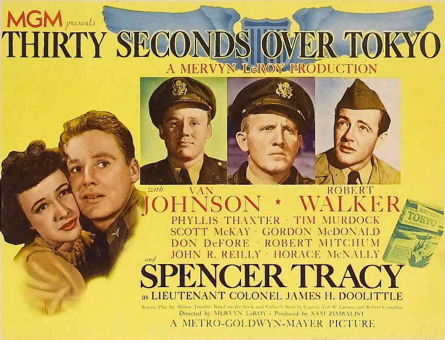 Thirty Seconds Over Tokyo (1944)In 1944, Dalton Trumbo returned to the theme of war and fighter pilots with the hard-hitting taleThirty Seconds Over Tokyo. Based on Lt. Ted W. Lawson’s real-life account of the Doolittle Raid, the courageous first attack on Tokyo in 1942, the film tried to capitalize on the power of individual heroics, especially at a time when the war in the Pacific was suffering heavy losses. The film, directed by Mervyn LeRoy, reunited Trumbo with two of A Guy Named Joe’s stars––Van Johnson as Lawson, and Spencer Tracey as the raid’s chief architect, Lt. Col. James Doolitte. While the story illustrates how planes were snuck into Japan to drop bombs on Tokyo, the real drama occurs after the attack, when Lawson and his crew struggle to survive after their plane goes down off the Chinese coast. To get the story right, Trumbo interviewed many of the men involved in the original raid, and got permission from the War Department to fly on a B-25, the type of plane flown by Lawson. But translating the crew’s real-life experience into a Hollywood film went beyond getting the details right. Not only could Trumbo not include the fact that the Chinese who rescued Lawson and his crew were communists, but the War Department asked MGM to omit this part of the story as much as possible. “Damaging repercussions might result if the film emphasizes the part the Chinese play as a nation in assisting the flyers out of enemy-occupied territory,” warned Army officials. “This angle should be reduced to a minimum.” But Trumbo, seeking a larger perspective, not only included the Chinese, but avoided anti-Japanese jingoism as well. At one point, Lawson admits that while he doesn’t like the Japanese, he doesn’t hate them either. The final film was a triumph all around. For MGM, it was one of the highest grossing films that year. And the New York Times film critic Bosley Crowther singled out Trumbo’s restraint and precision, proclaiming, “as a drama of personal heroism, it is nigh the best yet made in Hollywood.” Newsweek later listed it as "one of the finest war movies to date."