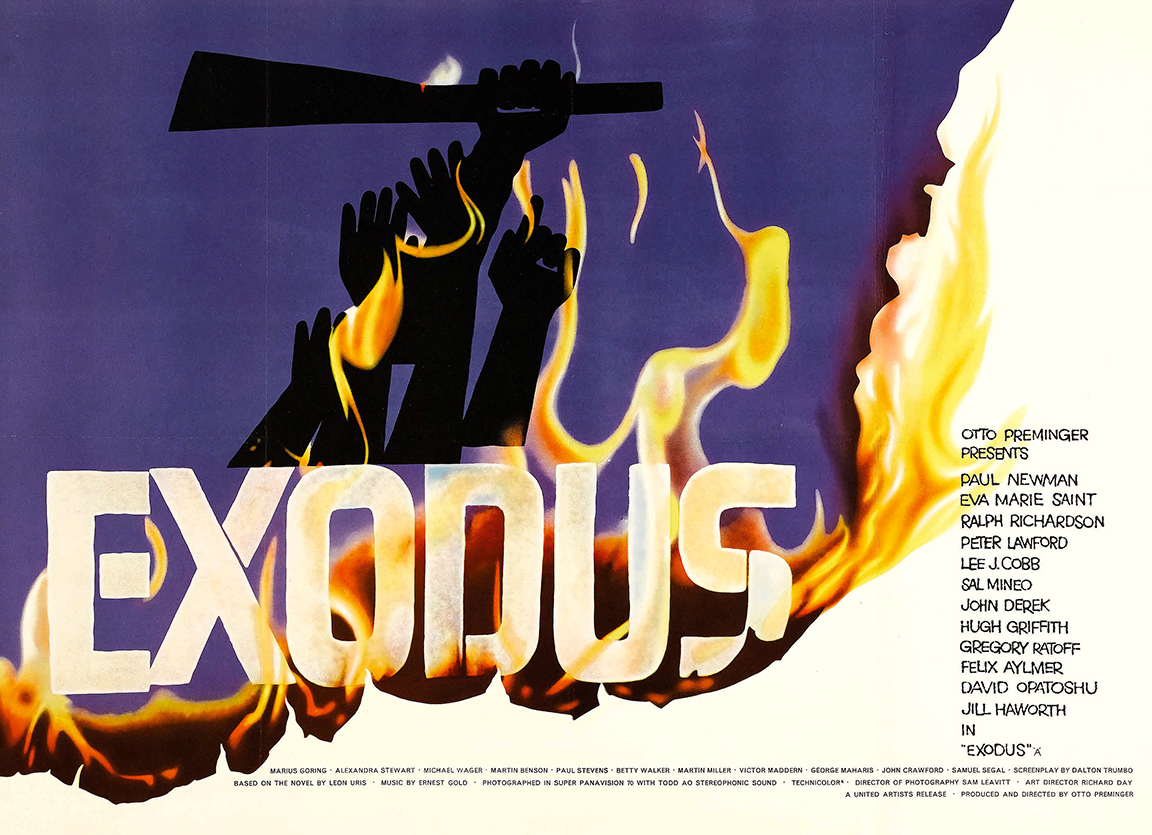 Exodus (1960)On December 12, 1959, Dalton Trumbo received a telegram from Otto Preminger that read: “BuyExodus. Read at once. You must help me. I will arrive Dec 16.” In 1958, Preminger and United Artists bought the film rights to Leon Uris’ monumental novel about the founding of Israel months before it was published. When the novel became the biggest bestseller since Gone With The Wind, Preminger rushed forward to make the movie with Uris writing the script. But when neither Uris, nor his replacement, Albert Maltz, could deliver a workable screenplay, Preminger telegrammed Trumbo. Working at breakneck speed, Trumbo pounded out a script in 40 days. While the two men could not have been more different, Trumbo cherished the experience, noting, “I had more pleasure working with Otto than with anyone in my life. More fun, more amusement, more tact, and, of course, more hard work.” Interestingly, Exodus started as a screenplay, not a novel. Uris was contracted by MGM in 1956 to develop the story as a film project, and only when it was abandoned did Uris turn his years of research into a novel. To bring the book’s vast historical reach into focus, Trumbo dramatized the fate of the passengers of Exodus 1947, a ship that the British violently turned back from bringing Jewish immigrants to Palestine after World War II. The passengers, led by the activist Ari Ben Canaan (Paul Newman), force the British army’s hand through hunger strikes and militant attacks, until they are finally allowed to settle in the area that would become Israel. But their arrival is only half the story, as the newly emigrated Jews now find themselves in an ongoing battle with both the British military and Arab nationalists. Despite the novel’s popularity, a range of groups, from the Israeli government to Arab nations, were wary of the film’s politics, leading Preminger to announce before it opened that Exodus is “an American picture, after all, that tries to tell the story, giving both sides a chance to plead their case." The director attempted to be equally fair minded by crediting Trumbo as the film’s screenwriter, a gesture that opened up a whole new can of worms. Right wing groups denounced the film and the American Legion mounted a nationwide protest against the producers and the screenwriter. In the end, the convergence of political controversy, a best-selling novel, and a star-studded cast (featuring Newman, Ralph Richardson, Eve St. Marie, Lee J. Cobb, and Sal Mineo) turnedExodus into a major media event. Even before it opened, Exodus had racked up $1.6 million in advance sales, an unheard of number for a practice that film companies were just starting to engage in. And while critics were mixed about the film’s historical veracity, most were complimentary about Trumbo’s contribution. The Hollywood Reporter wrote, “Trumbo’s screenplay is superior to the book as a dramatic structure, and if the film fails, it is not the fault of the writing.”