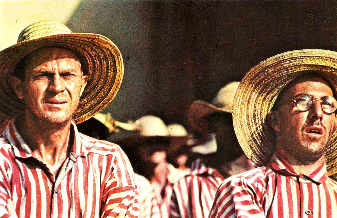 Papillon (1973) In October 1972, Dalton Trumbo received a very familiar phone call––a film that was scheduled to shoot immediately needed an emergency rewrite. The film wasPapillon, based on Henri Charrière’s real-life autobiography of being imprisoned on, and then escaping from, Devil’s Island, the prison camp in French Guiana. Published in 1970, Charrière’s harrowing tale of struggle and survival became an international bestseller. Wanting to capitalize on its popularity, producers Ted Richmond and Robert Dorfmann quickly optioned Lorenzo Semple, Jr.’s screenplay of the adventure. But as they pieced together the financing, budgetary concerns altered the nature of the story. Although the producers had locked in Steve McQueen as the star of the big-budget project, Allied Artists, the company financing the film, insisted on a co-star to balance the risk. The producers were lucky enough to get Dustin Hoffman to sign on, but unfortunately the original script didn’t include a role big enough for a co-star of Hoffman’s stature––and shooting was to begin in months. Enter Dalton Trumbo. To expand the part of Hoffman’s character, Dega, a convicted forger who has a minor part in Charrière’s memoir, Trumbo worked personally with the actor, discussing the story and reminiscing about his own life as a blacklisted writer. Their discussions not only provided Trumbo with enough material to rewrite the screenplay, but gave Hoffman a model on which to base his character––Trumbo himself. For Hoffman, “Trumbo’s sophistication overlays a dynamic strength and integrity which I felt was applicable to Dega.” But Trumbo was also willing to have fun with the character. When a prisoner tells Hoffman’s character, “I know you, you're Dega. You're a very intelligent man,” the prisoner responds, “Thank you. I seem to be known in all the wrong places.” Within a few weeks, Trumbo was able to tap out 60 pages before the film started shooting in Spain. The producers not only brought Trumbo along to Spain and Jamaica to continue rewriting scenes on set, but cast him as the prison’s commandant. During the production, which was plagued with everything from heavy rain to bad ganja in Jamaica, Trumbo’s worst news came in the form of a personal phone call from his doctor’s office in Beverly Hills. Tests he’d taken before production started revealed that the screenwriter had lung cancer. Forced to get an operation immediately, Trumbo worked out a deal with the Writers Guild of America to let his son Christopher finish the production for him. While the operation was successful, Papillon would be Trumbo’s last film before he died in 1976 of a heart attack.
