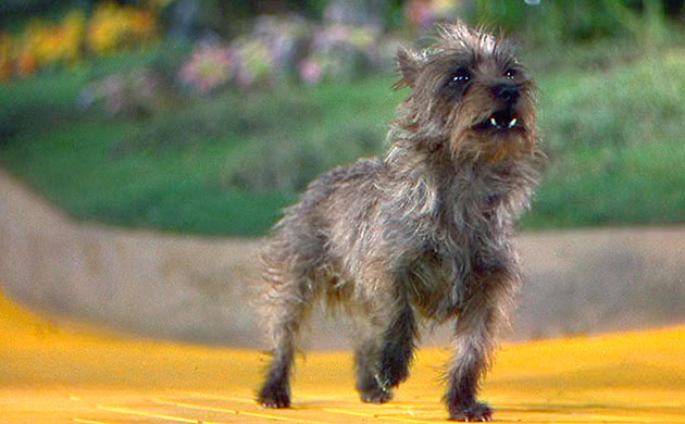 Terry, the Cairn Terrier, who played Toto was a well-seasoned actor before she took to the yellow brick road with Dorothy in The Wizard of Oz. Born in 1933, Terry was adopted by Carl Spitz after her original owners gave her away. With a little love and training, she quickly became a star. At one year old, she appeared as Shirley Temple’s pup, Rags, in Bright Eyes. Two years later she showed up as Spencer Tracy’s sidekick, Rainbow, in Fritz Lang’s Fury. But it was the role of Toto that put Terry on the map. The film also almost ended her career when one of the Winkie guards accidently stepped on her, crushing her foot. Judy Garland was so moved by her canine co-star’s plight that she tried to adopt her after letting her recover at her estate. For Terry, these were golden days. With a salary of $125 per week, she was bringing in more than many human actors on the film. After her success in The Wizard of Oz, Terry changed her professional name to Toto, making 13 more films before she retired in 1942. In 2001, Willard Carroll used Carl Spitz’s scrapbook of Terry’s escapades to write I, Toto: The Autobiography of Terry, the Dog Who Was Toto.