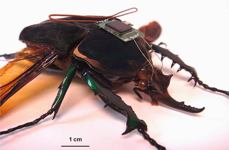 Recruiting the Animal Kingdom: Cyborg BugsEYE IN THE SKY showcases how some micro aerial vehicles (MAVs) are often disguised as recognizable creatures, like birds or insects, to escape detection. The idea of recruiting animals as our allies is not new. In Frankenstein's Cat: Cuddling Up To Biotech's Brave New Beasts, Emily Anthes recounts a tragic early attempt by the CIA to transform our pets into secret agents. After wiring a cat with sound and recording devices, the CIA pushed the feline out the door to spy on a pair of foreign officials sitting on a bench nearby. Unfortunately, as Anthes recounts, “the cat wandered into the street, where it was promptly squashed by a taxi.” Some 50 years later DARPA revived the dead cat (metaphorically) by asking scientist to submit "innovative proposals to develop technology to create insect-cyborgs." Inspired by the drone hummingbird and fly models, DARPA thought, "it might be possible to transform [insects] into predictable devices that can be used for…missions requiring unobtrusive entry into areas inaccessible or hostile to humans." Michel Maharbiz, an associate professor of electrical engineering and computer sciences at UC Berkeley, immediately went to working wiring up a beetle. Within a short time, he and his team had successfully flown a beetle by remote control. They have refined the process by implanting components during the insect’s pupal stage, so that when the beetle becomes an adult, the mechanical parts are fully integrated into its body. Others have begun research to see if they can power the insect’s new electronic circuitry by using the energy created by its flapping wings. While currently such technology is designed primarily for surveillance, in the future these cyborg insects, much like their MAV counterparts, could take on more aggressive tasks. EYE IN THE SKY director Gavin Hood points out that in the future MAVs might “be equipped with face recognition software for example, and sent into a crowded room to identify an individual who has been targeted for assassination. And when they recognize that individual, the MAV might simply release a small dose of anthrax, or some other poison, and leave.” Our cyborg agents might be recruited for similar diabolical missions.