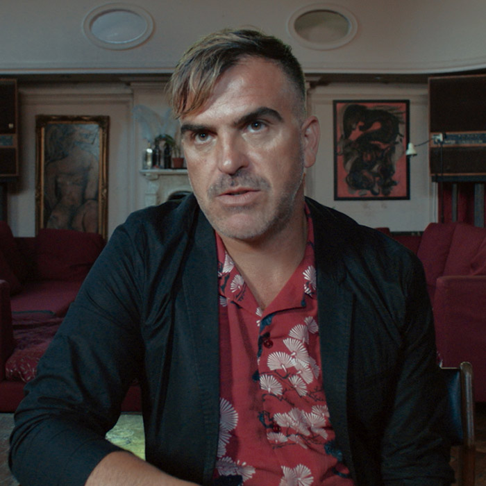 In 1994, a 26-year-old Andrew Groves was introduced to Alexander McQueen, who was just a year younger, by a mutual friend at the gay bar Comptons. Within days, the two would become boyfriends, living and working together until 1996. During that time, McQueen would establish himself as one London's most talented and controversial new designers, and Groves would start his own design career. Soon after they met, McQueen hired him as a designer, because, as Groves jokes, "he realized that I could sew and pattern cut." After they broke up, Groves enrolled in the MA Fashion Course at Central Saint Martins. After designing under the name Jimmy Jumble, Groves switched the label to be his own name. During this period, Groves gained a reputation for smart tailoring and outrageous shows. His 1999 collection "Cocaine Nights," with models wearing dresses draped with razor blades walking on a platform of white powder, became the talk of the fashion press. Over the years, his talent has expanded to teaching and consulting. He has created costumes for such stars as Robbie Williams and Kylie Minogue. Since 2001, he has taught fashion design at the University of Westminster.